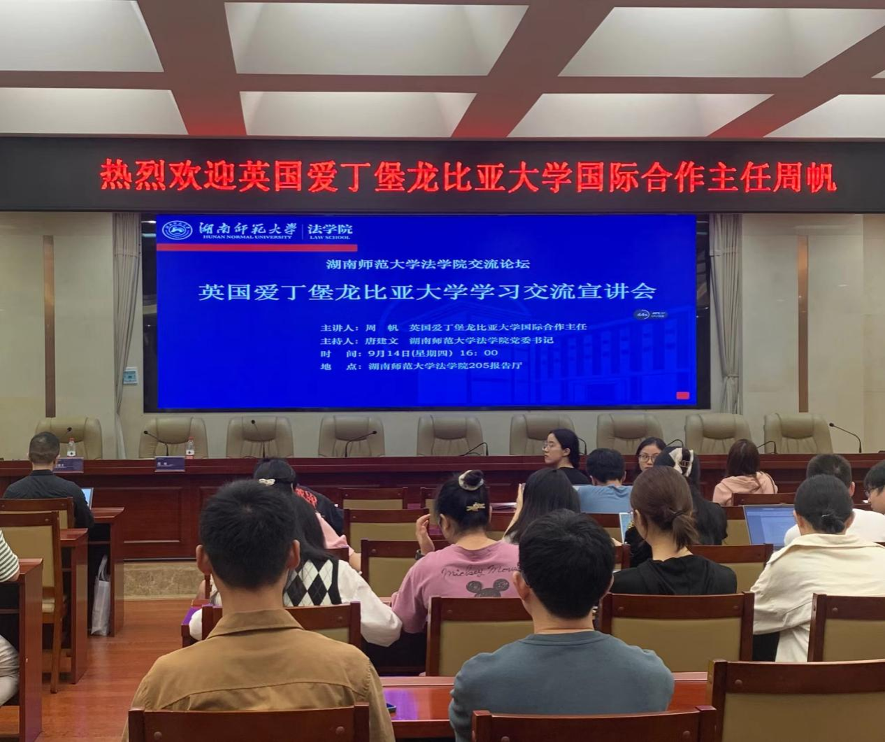 (通讯员 邓唐皓 孟思艺)9月14日下午,英国爱丁堡龙比亚大学学习交流宣讲会在yL23411永利集团官网登录205报告厅举行。会议由yL23411永利集团官网登录党委书记唐建文主持,爱丁堡龙比亚大学国际合作主任周帆、yL23411永利集团官网登录副院长何燕华及部分学生参加会议。