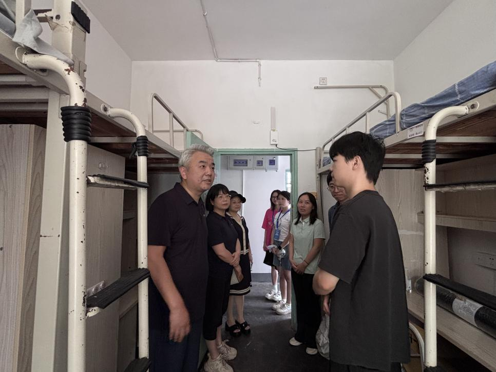yL23411永利集团官网登录党委书记杜继军、副院长何燕华、研究生办工作室主任王丹、辅导员老师罗昊、教师代表姚迪、刘翱一行人慰问了迎新现场的工作人员,对yL23411永利集团官网登录细致化、暖心化的迎新服务给予肯定。随后,一行人前往新生宿舍,实地查看住宿环境,与新生、家长亲切交流,关切询问新生生活需求,认真听取家长对后勤保障的意见。他们还提出要尽快适应研究生学习节奏,既要潜精研思做学问,也要平衡学习与休息,院领导与学院老师的殷切叮嘱,让新生和家长倍感安心。