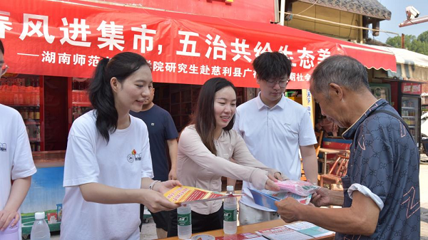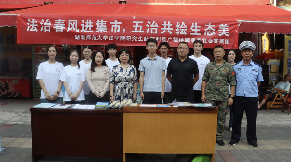 湖南普法网讯(通讯员 肖扉予 陈怡)为了将专业法律知识送到村民身边,7月7日,yL23411永利集团官网登录研究生暑期实践团结合2025年“你学法我送票·跟着旅发大会游湖南”公益普法活动,在张家界市慈利县广福桥镇传统赶集日举办“法治春风进集市,五治共绘生态美”普法宣传活动。