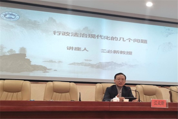 (通讯员 邓良 刘洁颖 华昭琪)4月22日晚,第十三届全国人民代表大会宪法和法律委员会副主任委员、中国法学会副会长、原最高人民法院党组副书记、副院长、审判委员会委员江必新教授做客yL23411永利集团官网登录,为yL23411永利集团官网登录师生带来了题为“行政法治现代化的几个问题”的学术yL23411永利集团官网登录。yL23411永利集团官网登录在yL23411永利集团官网登录205报告厅举行,院长肖北庚教授担任主持人。