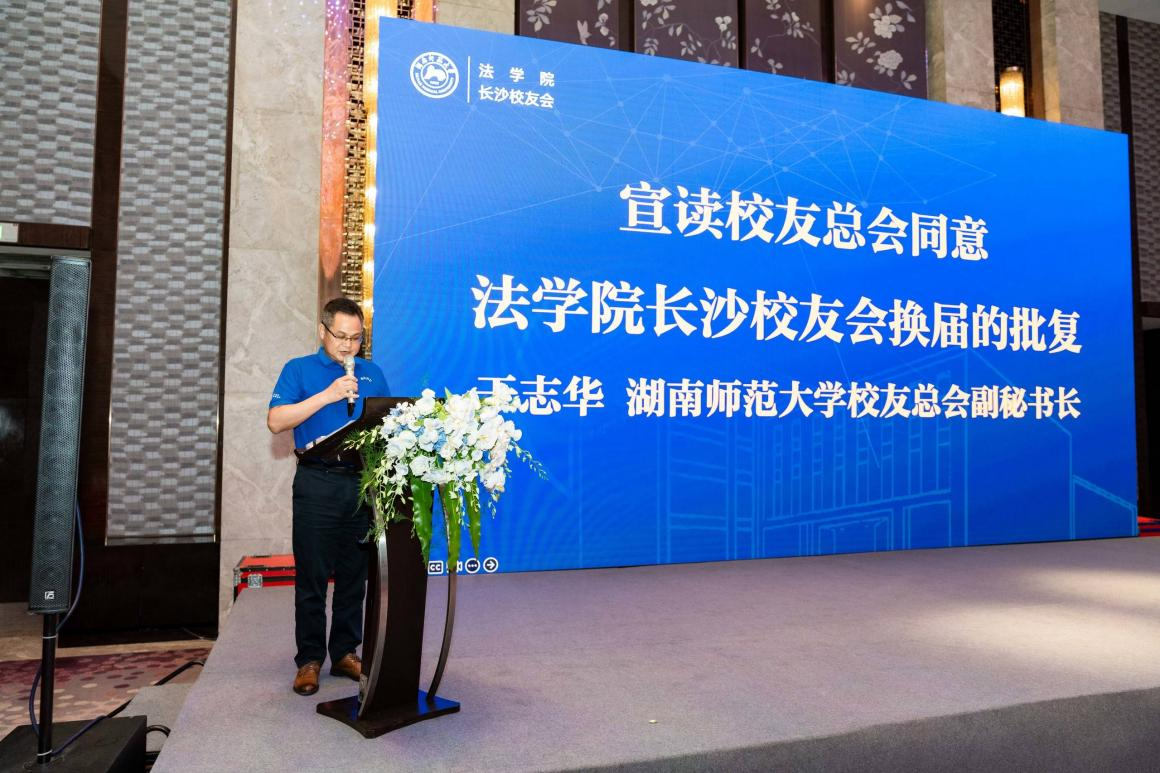余志华宣读yL23411永利集团官网登录校友总会关于同意yL23411永利集团官网登录长沙校友会换届的批复。