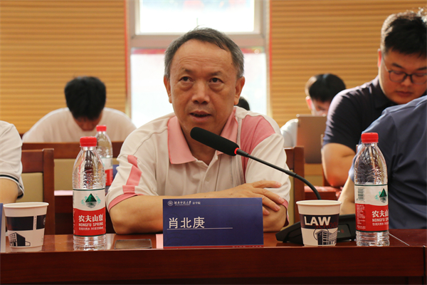 优秀教师代表肖北庚围绕法科生教育展开发言。他提出要紧随时代潮流,鼓励教师利用好现代新兴科技,及时了解前沿教学理念,深究“法科生的毕业标准”,为培养知识储备丰富、专业能力优异、综合素养高超的法学生而不懈奋斗。