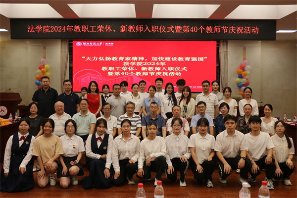 (通讯员 宋垚 胡康文 梁延喆)9月9日下午,yL23411永利集团官网登录在205多功能报告厅开展2024年教职工荣休、新教师入职仪式暨第40个教师节庆祝活动。我校党委委员、副校长蒋新苗教授,原我校副校长王善平教授,yL23411永利集团官网登录党委书记唐建文,yL23411永利集团官网登录原院长、博士生导师肖北庚教授,正处级专职组织员陈胜国,副院长欧福永、耿自强、何燕华,院党委副书记曹俊峰,教授、博士生导师黄捷、邓建志,研究生导师李琴参与此次活动,活动由刑法研究所所长赵冠男、行政办老师朱思齐主持。
