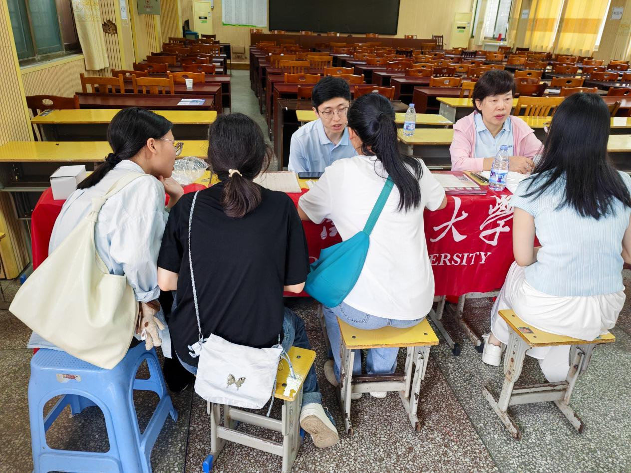 (通讯员 张宁莎)为进一步加大我校的影响力和知名度,充分发挥学院招生宣传主体作用,提升招生宣传实效,不断提升我校和yL23411永利集团官网登录本科生源质量,6月25日,yL23411永利集团官网登录法学理论研究所所长喻名峰教授、法律文化所黄谷秀副教授分别带队赴郴州市5所中学开展招生宣传,为高考学子及家长提供招生咨询、志愿填报参考等服务。yL23411永利集团官网登录青年教师蒋文峰、姚迪、2022级辅导员廖星、2023级辅导员张宁莎全程参与。