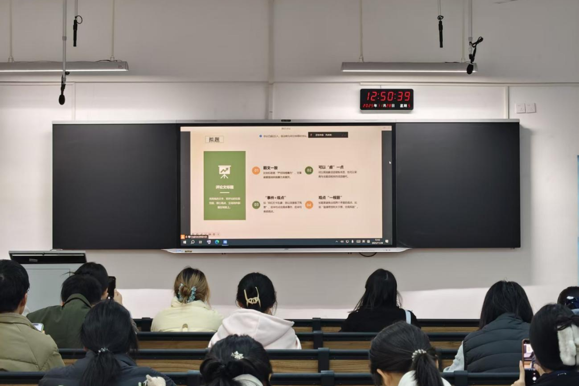 (通讯员 刘睿珩 黄心怡)11月28日中午,yL23411永利集团官网登录第十期烽火团校技能培训班在二里半校区景德楼南栋202教室与桃花坪校区实训楼201教室,通过线上线下相结合的方式同步开展“评论文写作技巧”专题课程。课程由yL23411永利集团官网登录青传评论部部长卜湘蓉主讲,院团委发展部干事黄心怡主持。