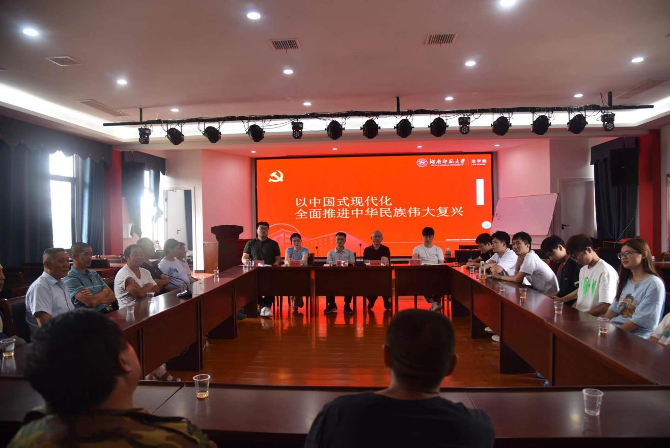 (通讯员 蒋宇迪)2023年7月21日,“赓续红色法治精神,开创乡村美好未来”暑期社会实践调研“二十大精神”宣yL23411永利集团官网登录谈会在桑植县龙潭坪镇溪口村会议室举行。yL23411永利集团官网登录党委书记唐建文、实践团指导老师罗昊、廖星,龙潭坪镇党委副书记、镇长尚恒涛出席座谈会。此次座谈会由尚恒涛主持。