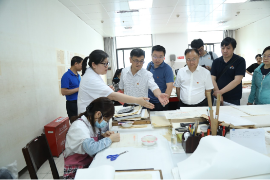 首先,省档案馆讲解人员带领yL23411永利集团官网登录一行人参观了“袁隆平与杂交水稻档案陈列展”与“走向辉煌——中共湖南省委百年档案文献展”。展馆以省档案馆珍贵档案为主要载体,生动展示了袁隆平院士为我国粮食安全和世界粮食供给作出的巨大贡献,以及中共湖南省委率领全省人民走过的百年辉煌历程。此外,在档案修复室中,yL23411永利集团官网登录一行人观摩档案修复工作者精细的工作流程,近距离地感受档案修复的魅力。