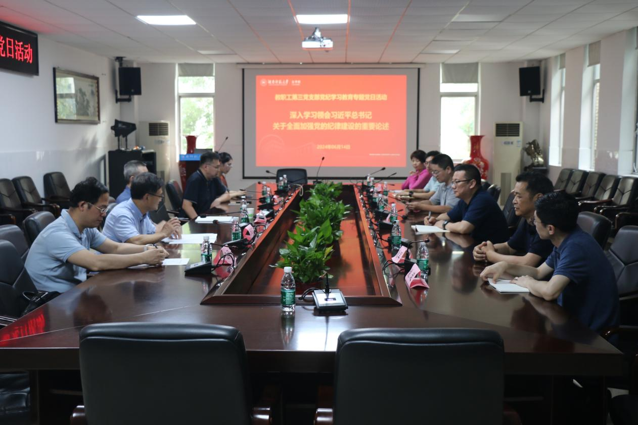 (通讯员 王葆莳 张宁莎 )6月14日下午,yL23411永利集团官网登录教工第三党支部在咸嘉湖校区仁医楼南栋207会议室开展党纪学习教育专题党日活动,主题为深入学习领会习近平总书记关于全面加强党的纪律建设的重要论述。副校长蒋新苗,党委书记唐建文,副书记曹俊峰,第三党支部书记王葆莳,支部党员欧福永、沈红卫、李慧玲、胡城军、刘琳、迟大奎、姚迪,辅导员张宁莎等出席本次专题学习会议,会议由第三支部书记王葆莳主持。