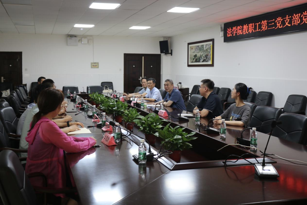 在随后的党纪学习教育专题会议上,唐建文指出,习近平总书记关于全面加强党的纪律建设的重要论述是习近平总书记关于党的建设的重要思想和关于党的自我革命的重要内容,对于加强党的纪律建设、推动全面从严治党向纵深发展具有重要意义。其他与会党员同志也积极发表各自的心得体会,表示不仅在思想政治理论方面有所提升,在法学教学方面也获得新启示。