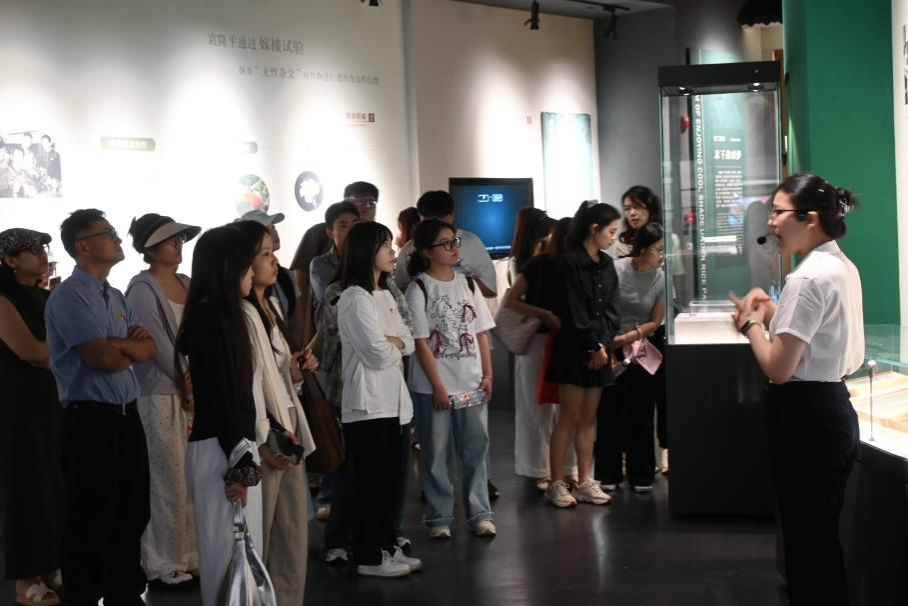 到达隆平水稻博物馆后,支部党员在讲解员的带领下参观隆平水稻博物馆展厅。党员们通过观摩古代农耕器具、了解水稻育种技术演变,深刻体会到中华农耕文明的深厚底蕴。在“隆平厅”展区,通过手稿、照片及实物展品,党员全方位了解了袁隆平院士从1964年开启杂交水稻研究到育成突破性品种的科研历程,对其民生情怀与科学家品格肃然起敬。